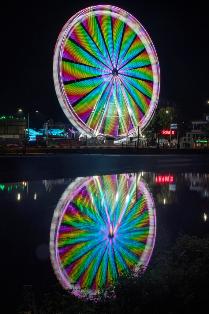 Een tijdje geleden hebben we onder de leden van Fotogroep Belfeld duo’s gevormd. Deze duo’s zijn samen op pas gegaan om te fotograferen. Samen fotograferen is altijd fijn en leerzaam. Het thema was lange sluitertijd. Tijdens de clubavond van 18 november zijn de foto’s van deze duo’s getoond en beoordeeld. De Foto van de Dag is deze keer een foto van een reuzenrad gefotografeerd door Charles de Vois. Charles van harte gefeliciteerd!
